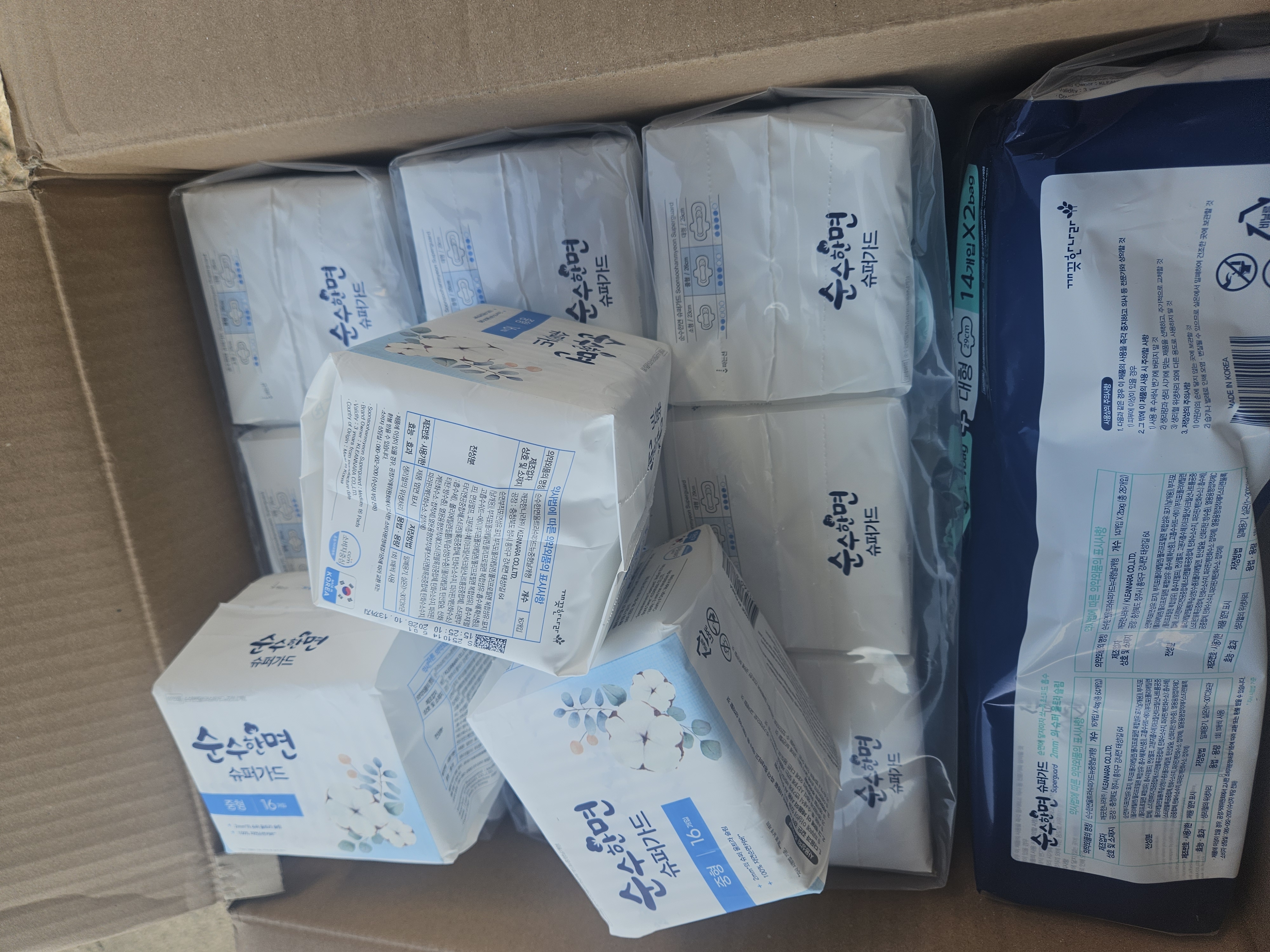 생리대 후원 감사합니다!아이들 가정으로 잘 나눌 수 있도록 하겠습니다. 감사합니다!
